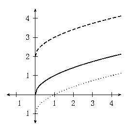The dashed line is \(y=\sqrt{x}+2\)