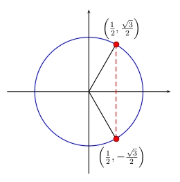 Draw the unit circle and draw the vertical line crossing the \(x\)-axis at \(\frac{1}{2}\).
